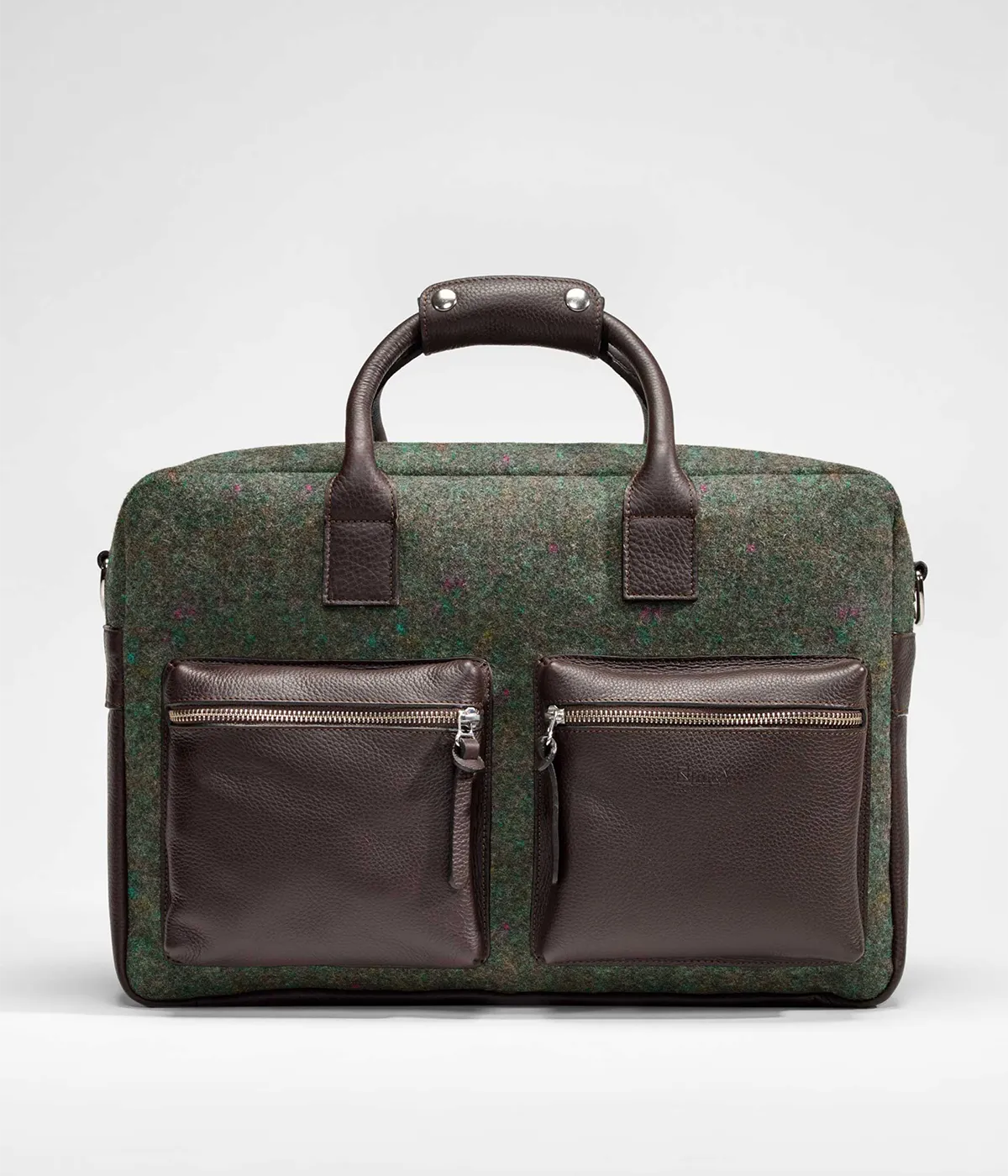 Saco de fim-de-semana em burel e pele genuína. Alça ajustável e amovível.