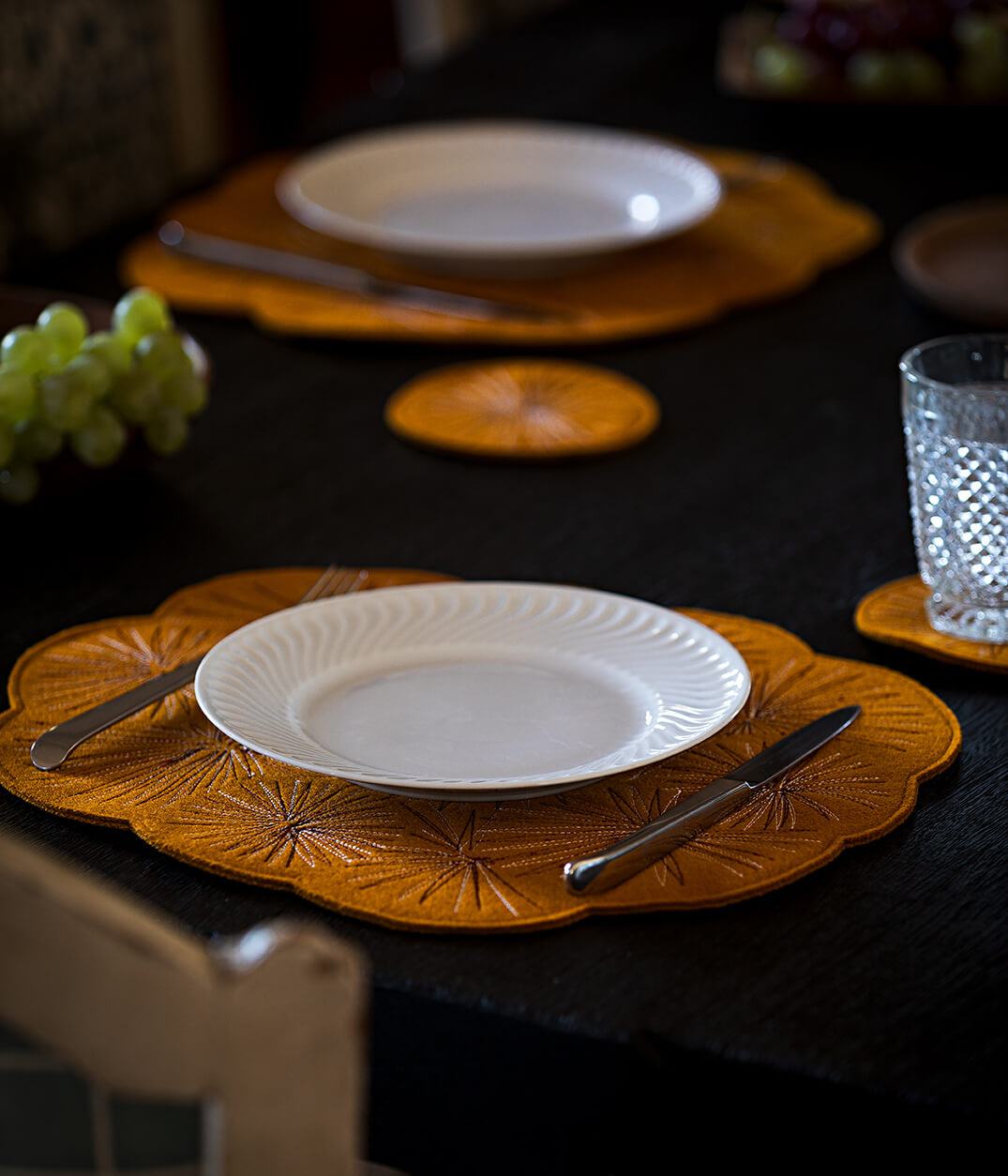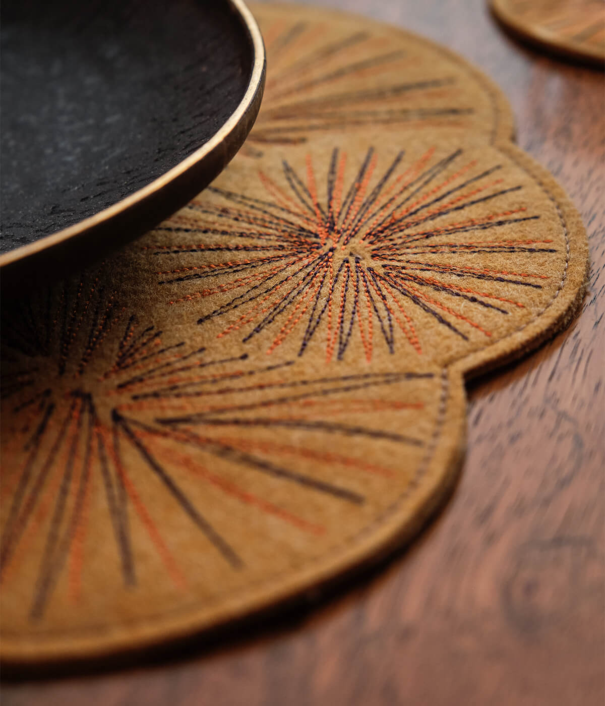 Tischset aus Burel, 100 % Wolle, mit mehrfarbiger Stickerei.