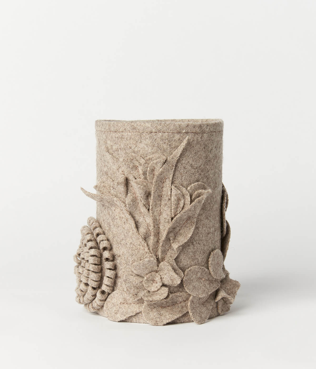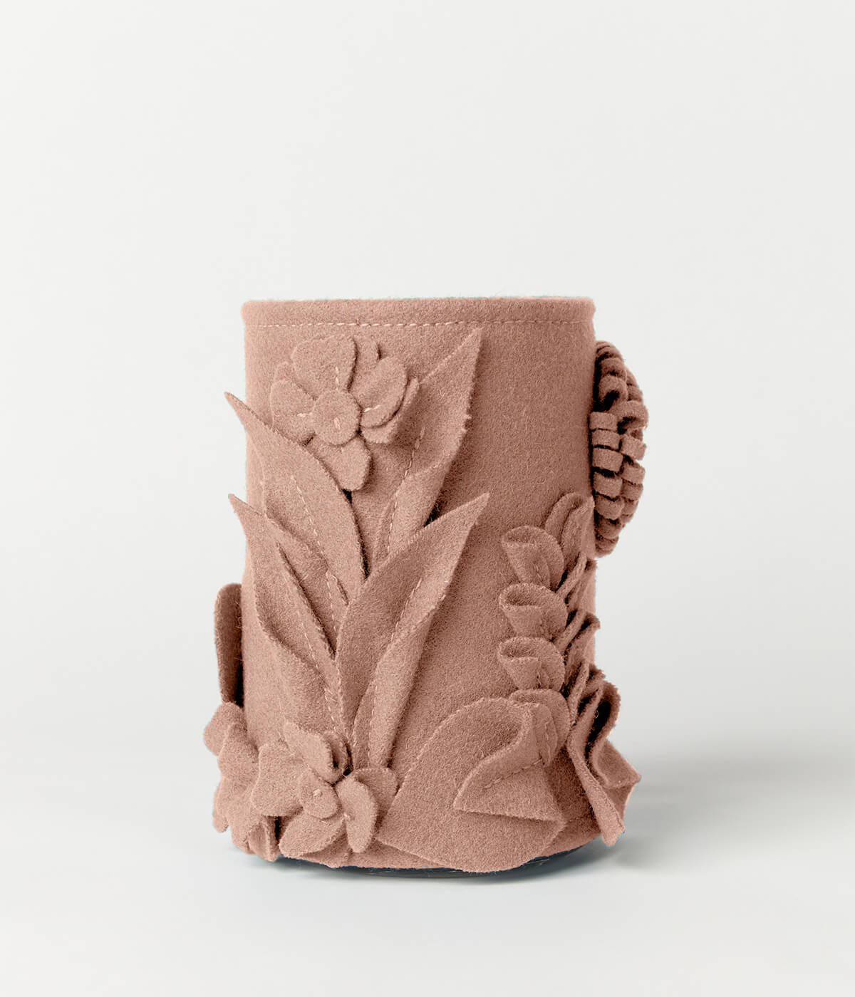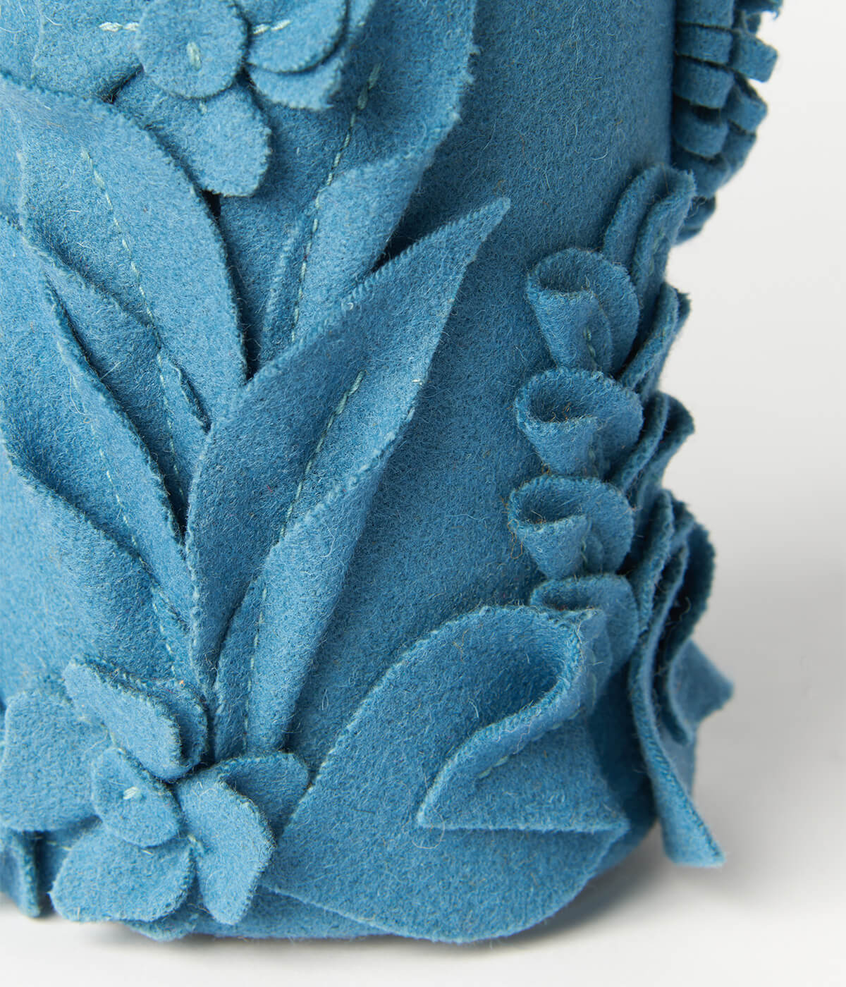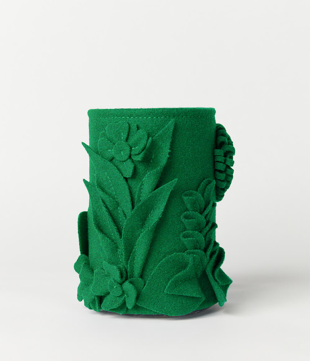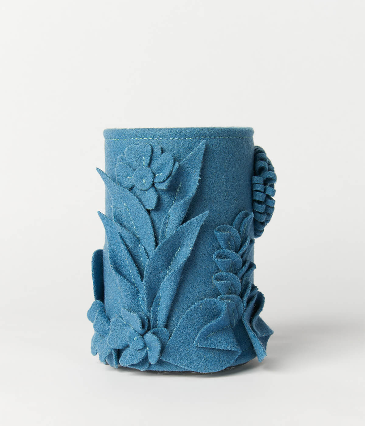 Burel-Bezug, 100 % Wolle, für Vase mit Primavera-Stich, manuell bestickt. Inklusive innerer Glaskaraffe.