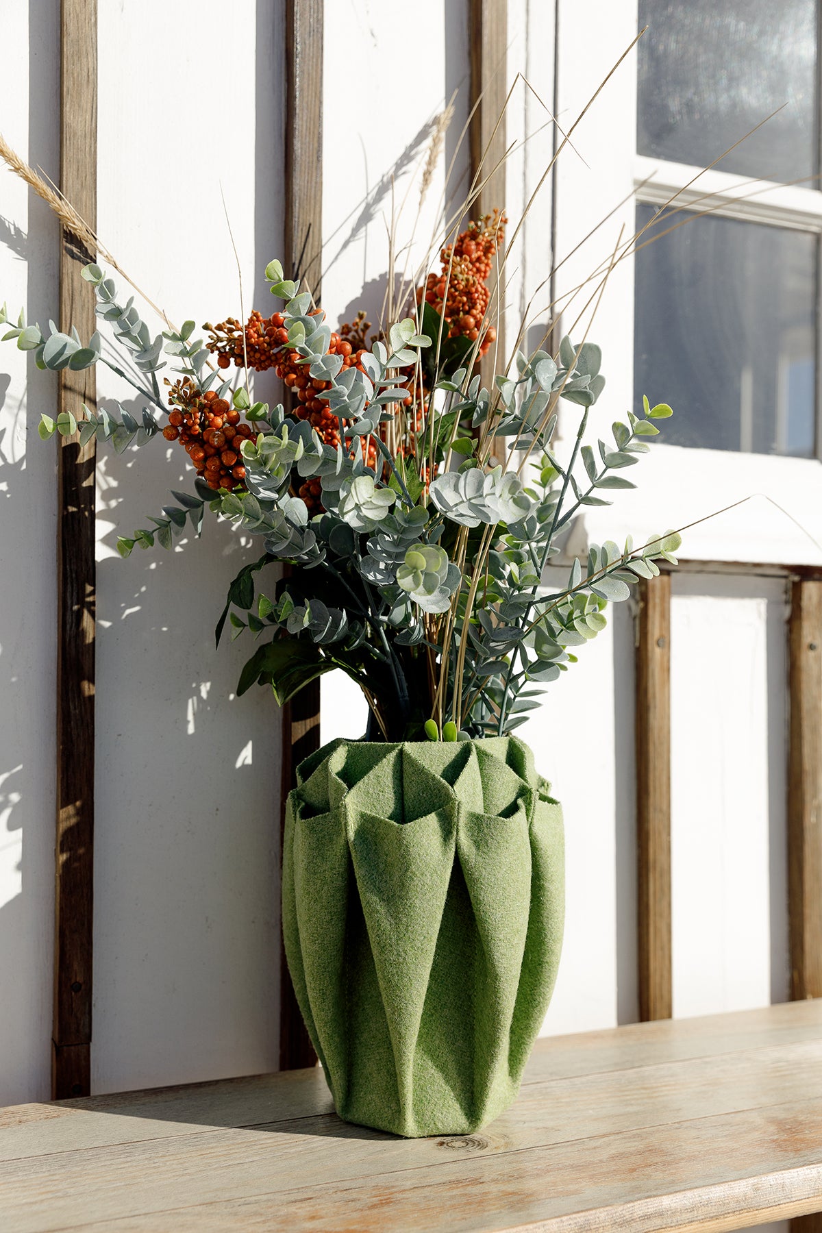 Burel-Bezug, 100 % Wolle, für Vase. Inklusive innerer Glaskaraffe.