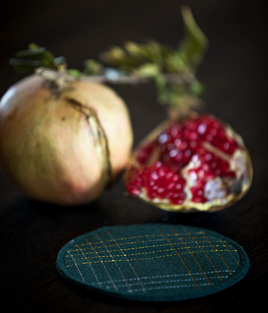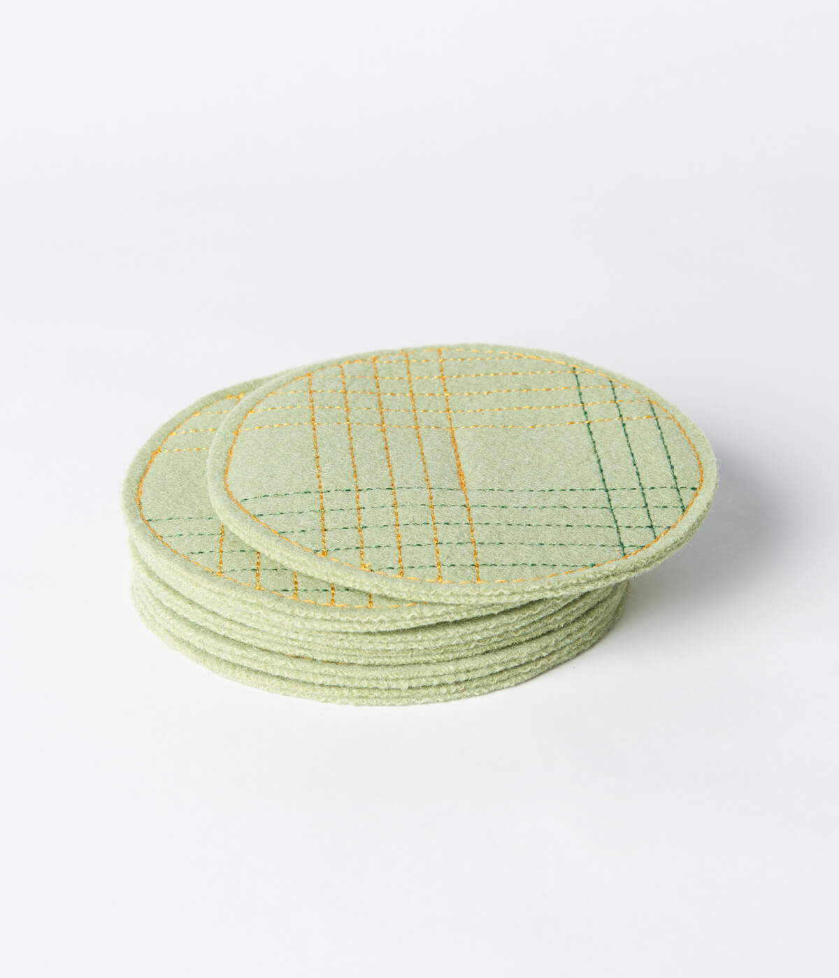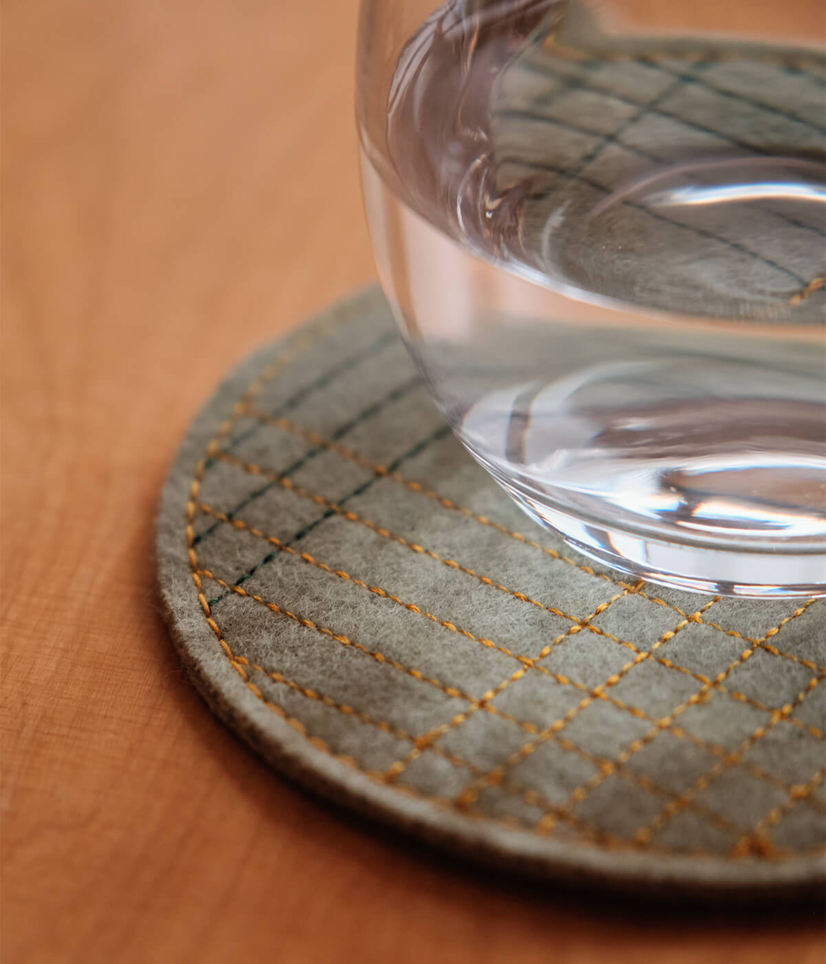 Set aus vier Burel-Untersetzern, 100 % Wolle, mit mehrfarbiger Stickerei.