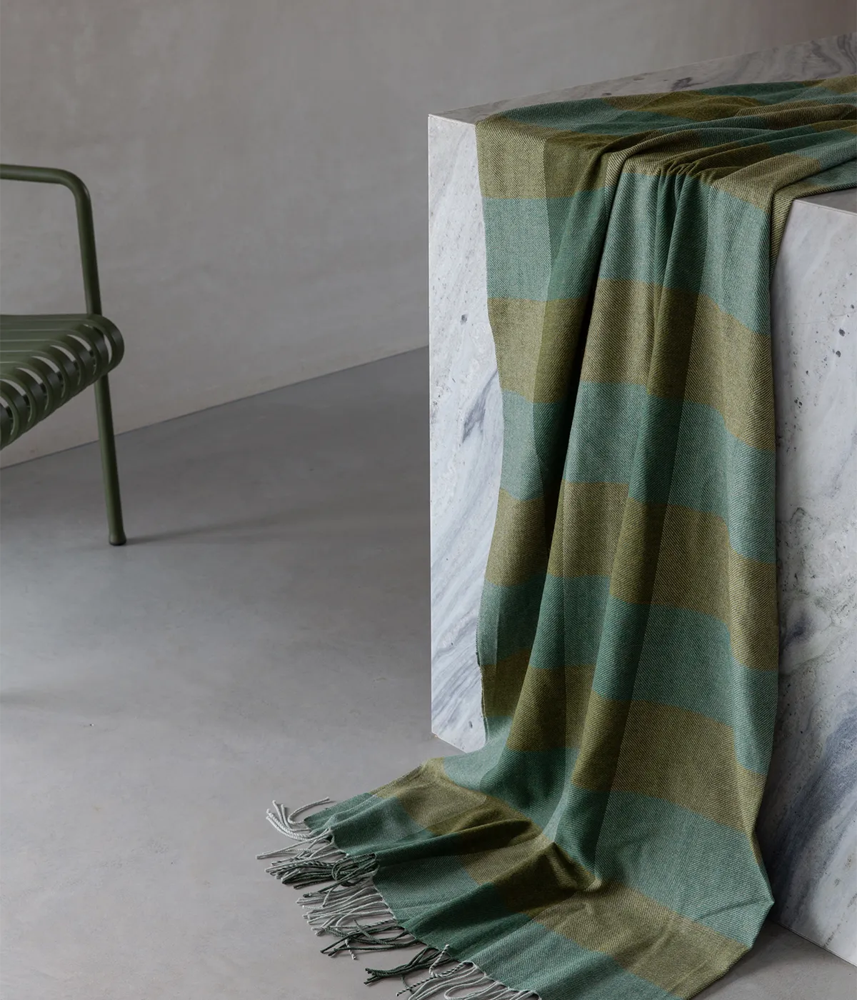 Die Grida Burel Factory Merinowolldecke wird aus feinsten Merinowollfasern auf alten Webstühlen hergestellt und von Hand veredelt. Decke mit Vintage-Muster für eine gehobene und zeitlose Einrichtung. Entdecken Sie das alte Erbe der Wollkunst der Serra da Estrela.
