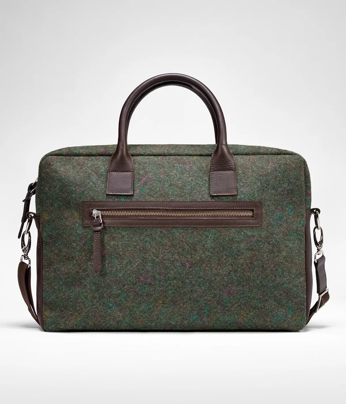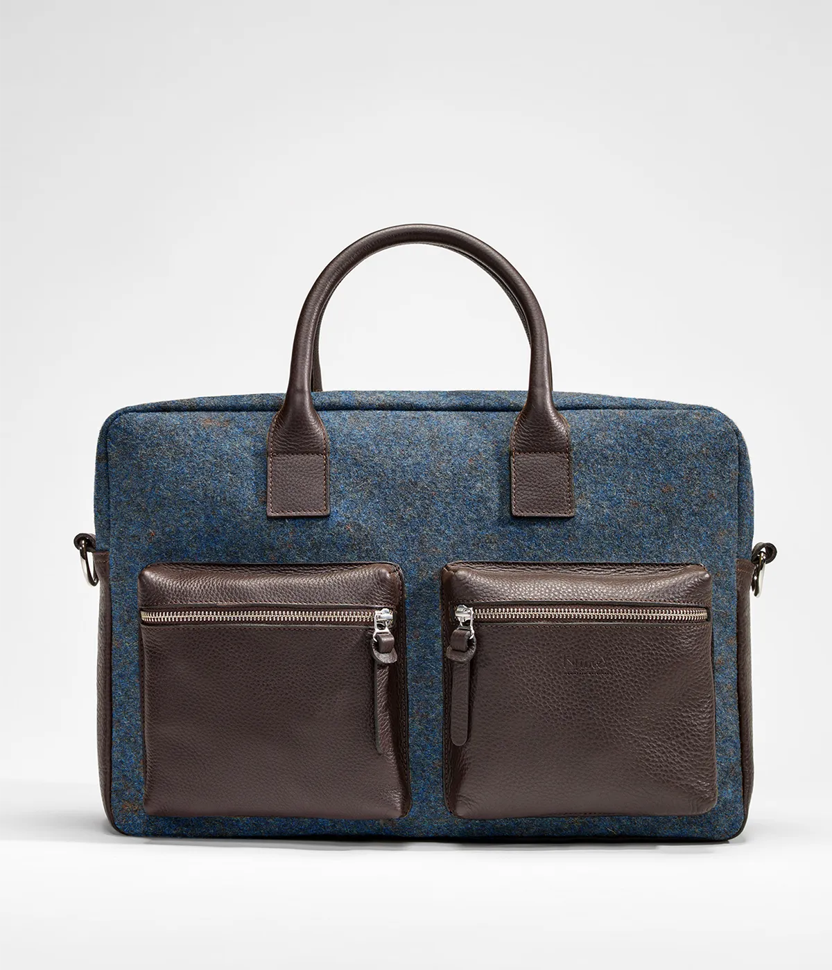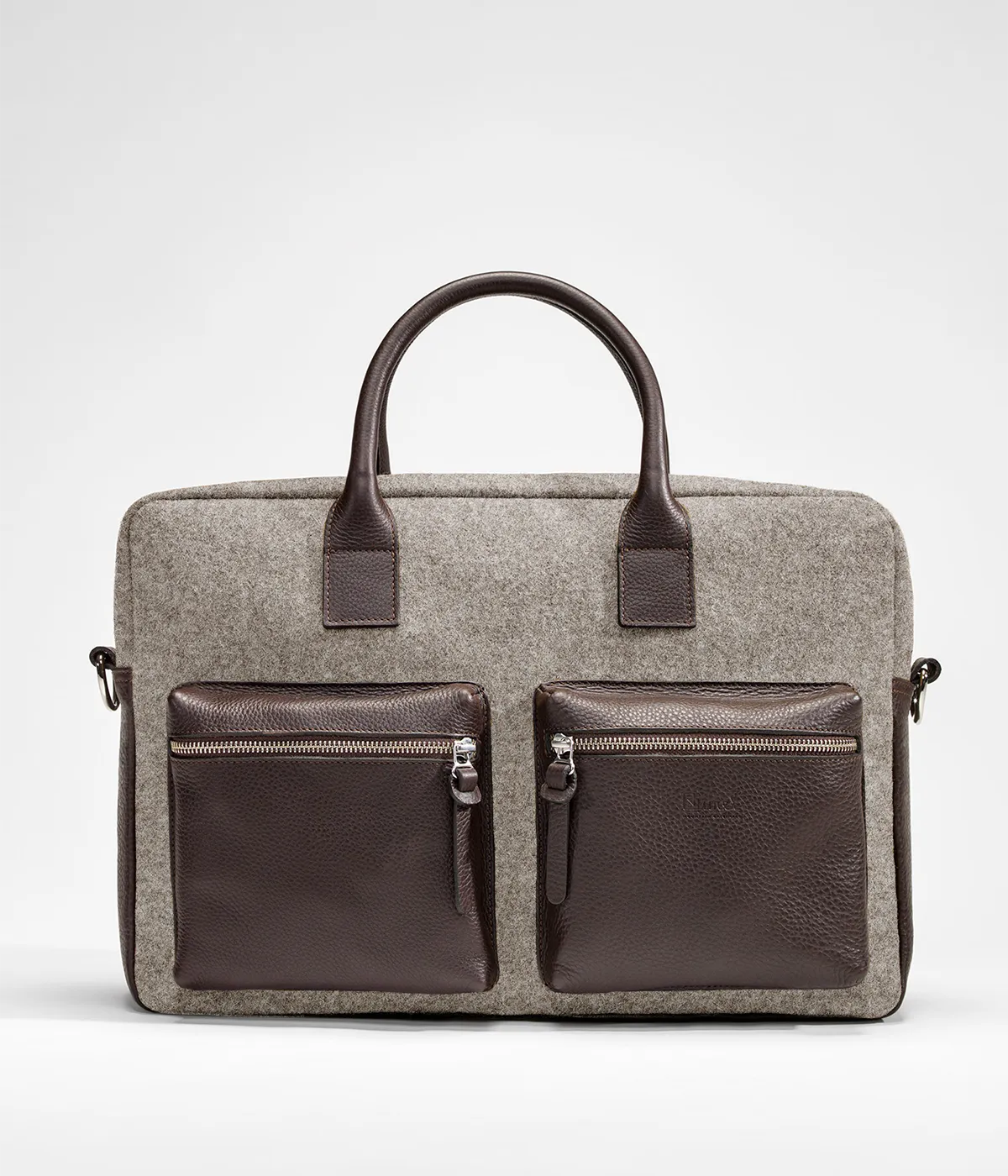 Bürotasche aus Burel und echtem Leder. Verstellbarer und abnehmbarer Riemen.