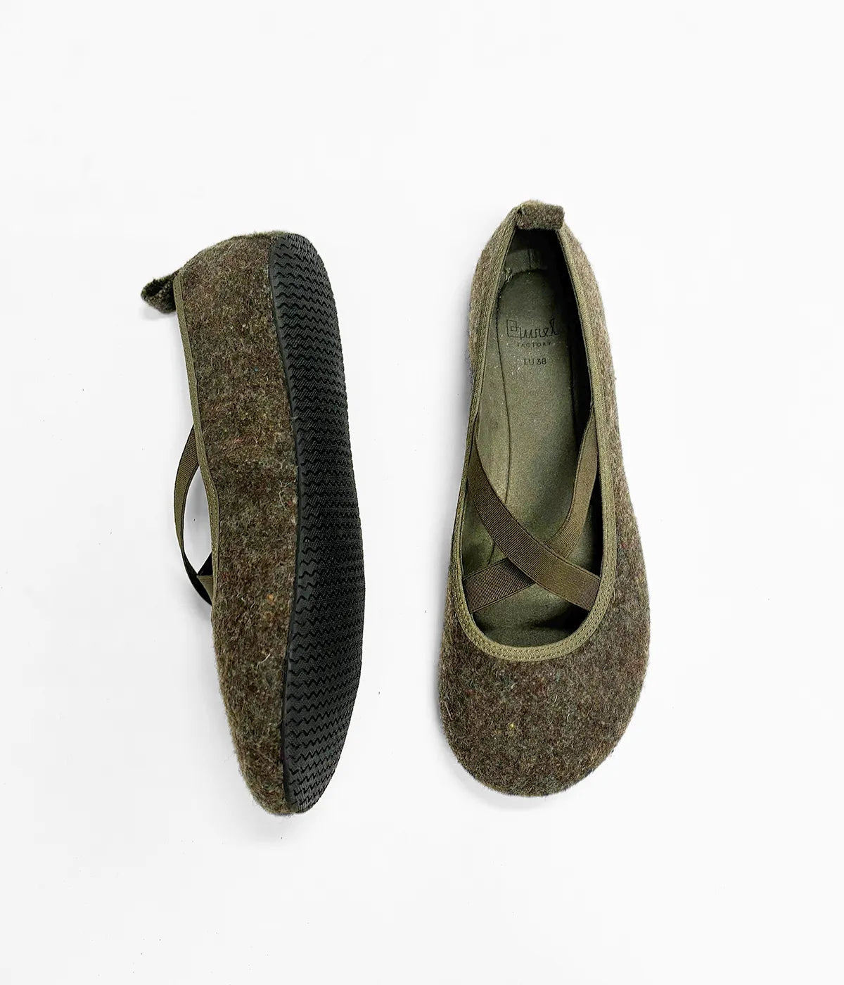 Ballerinas made of burel, 100% wool, with an elastic strap. Made in Portugal.