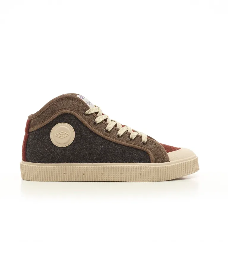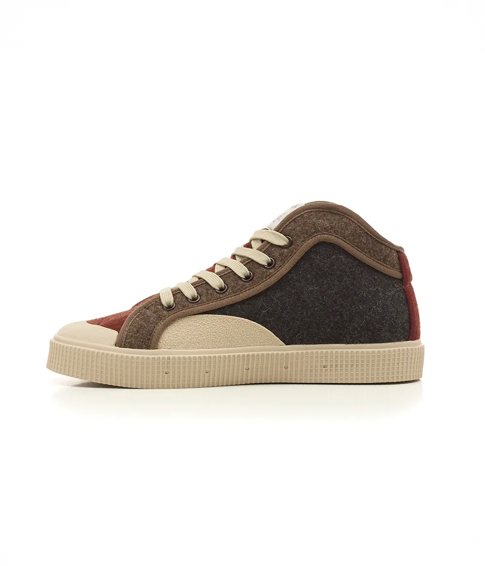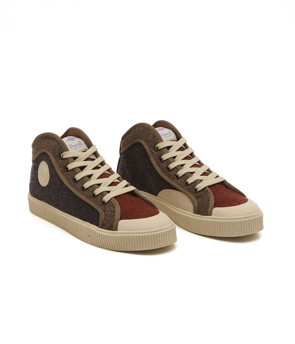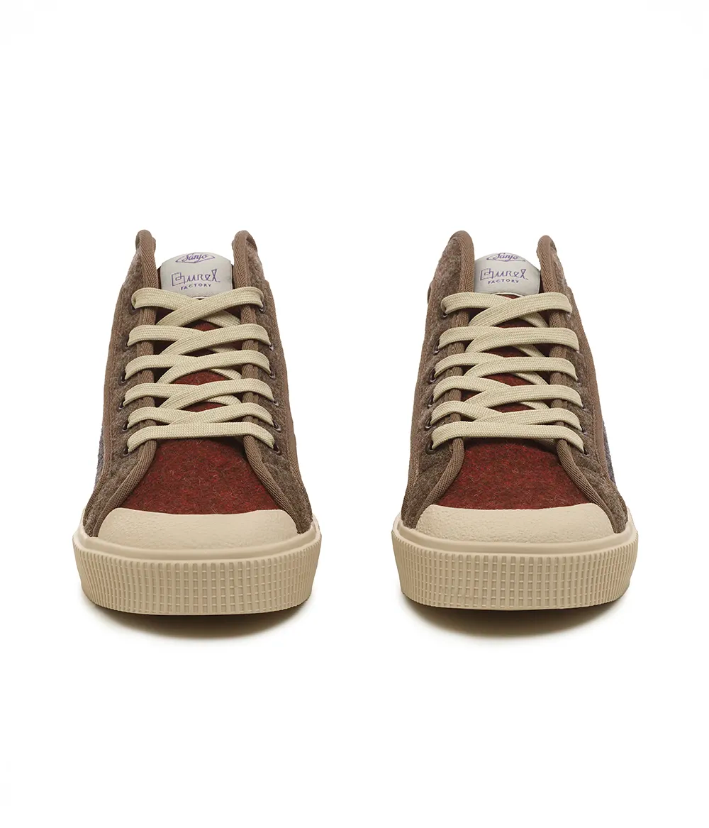 Sanjo's iconic sneakers, now covered in burel for greater warmth, comfort, and rain resistance.