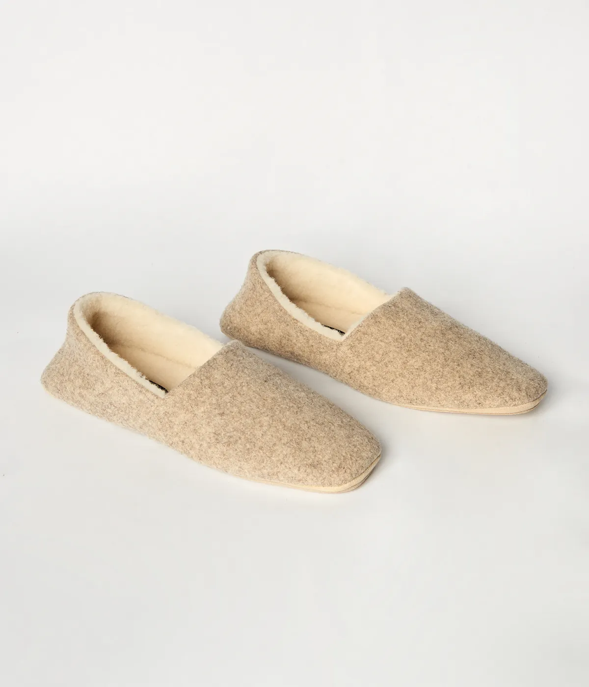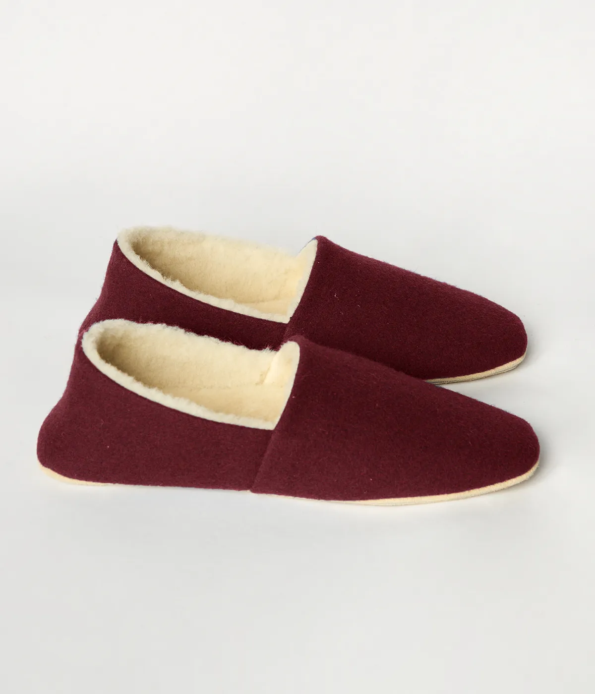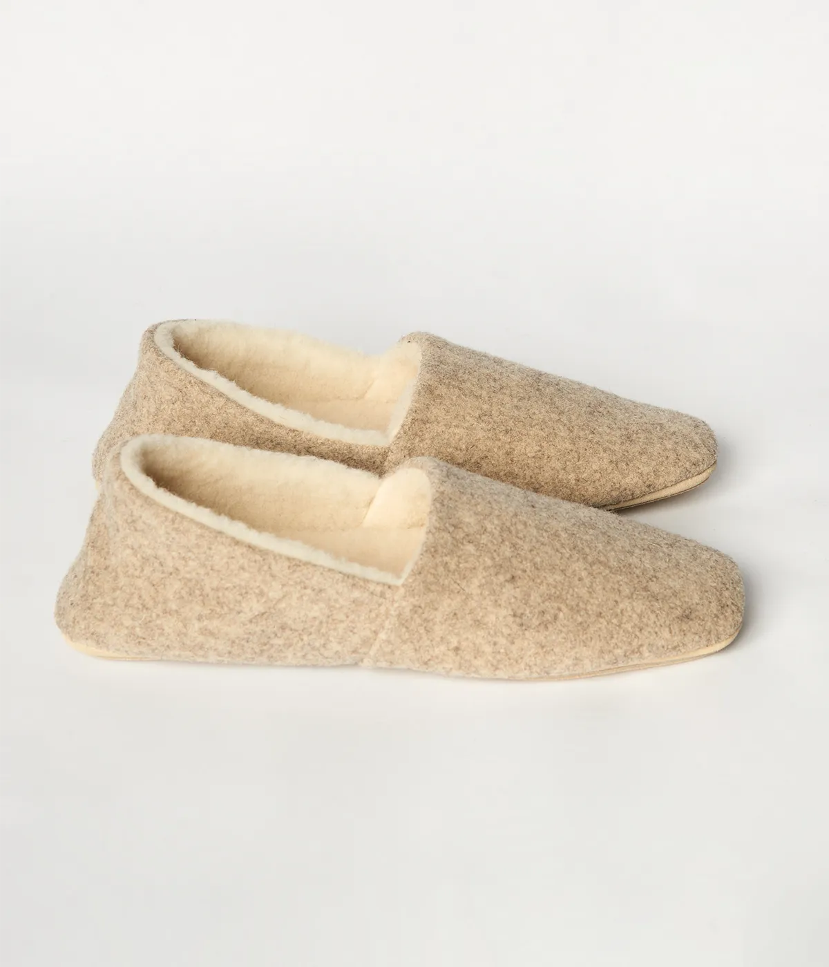 Zapatillas de casa confeccionadas en burel, 100% lana, con forro de lana y suela de ante.