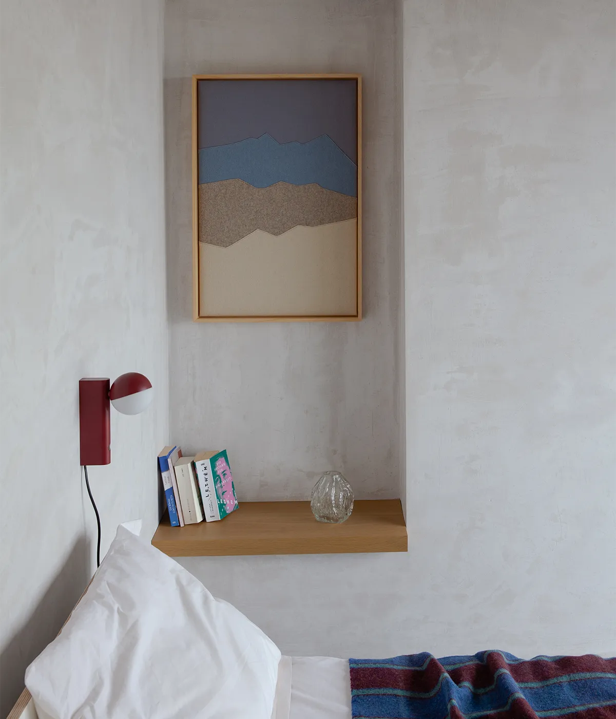 Burel 100% lana, MDF, herrajes metálicos, marco de pino