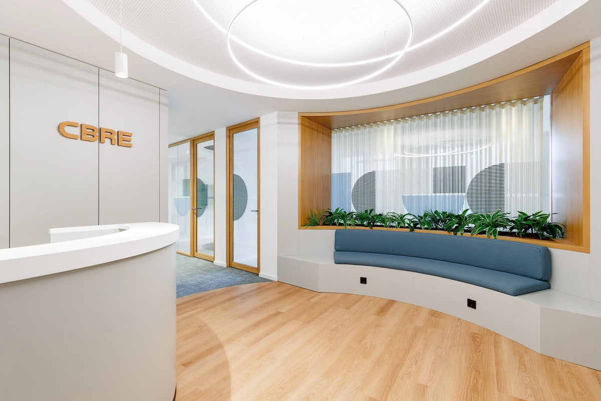 Esta intervenção foi reforçada por uma paleta de tons pastel e pela aplicação de painéis em burel, escolhidos pela sua capacidade natural de absorção acústica e pelas qualidades táteis do material. Para além da eficácia técnica, o burel acrescenta profundidade, textura e identidade ao ambiente, criando um espaço funcional e acolhedor.