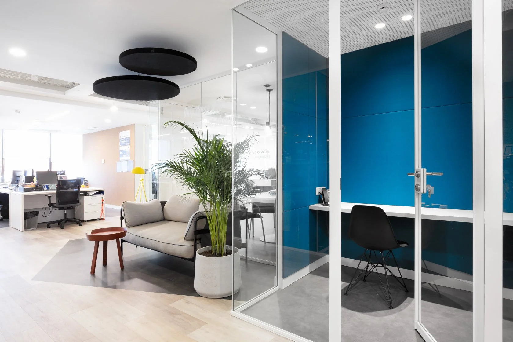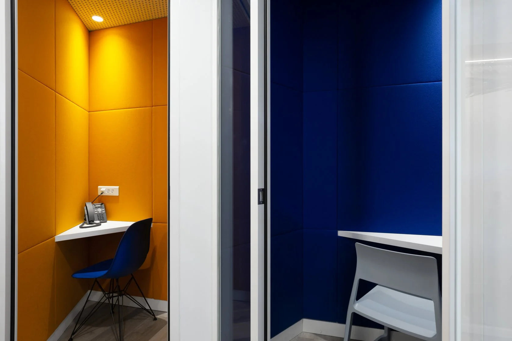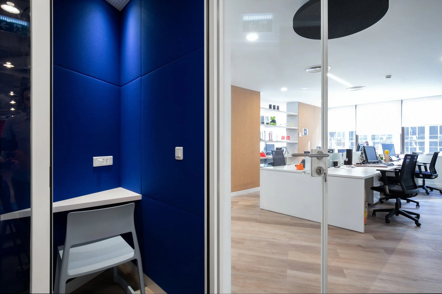 Para além do desempenho ambiental, intervenção foi concebida com foco na garantia de privacidade em contextos de conversação. O sistema construtivo considerou critérios de vedação, espessura material e integração com a arquitetura existente, assegurando eficácia funcional sem comprometer a linguagem estética do espaço.